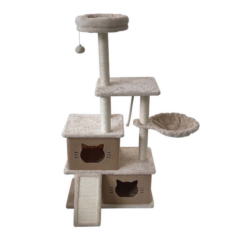 Stup za grebanje sadrži zabavne dodatke kao što su viseća lopta i uže za grebanje za poticanje prirodnih lovačkih instinkta vaše mačke. Ovi elementi će vašu mačku održati aktivnom, znatiželjnom i sretnom, što pridonosi njezinoj općoj dobrobiti.